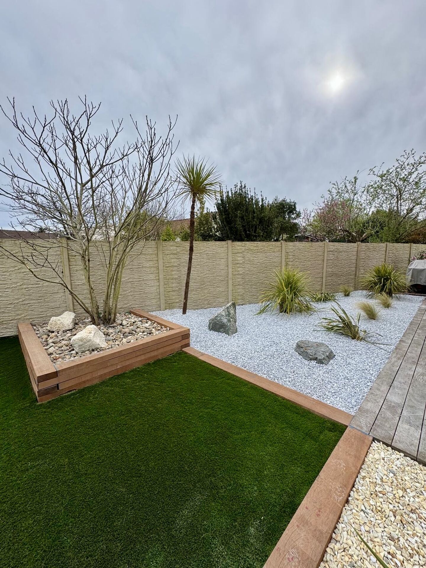 Notre équipe conçoit des espaces sur mesure intégrant massif, plantation, gazon synthétique et bastaing, pour un rendu esthétique, fonctionnel et durable.