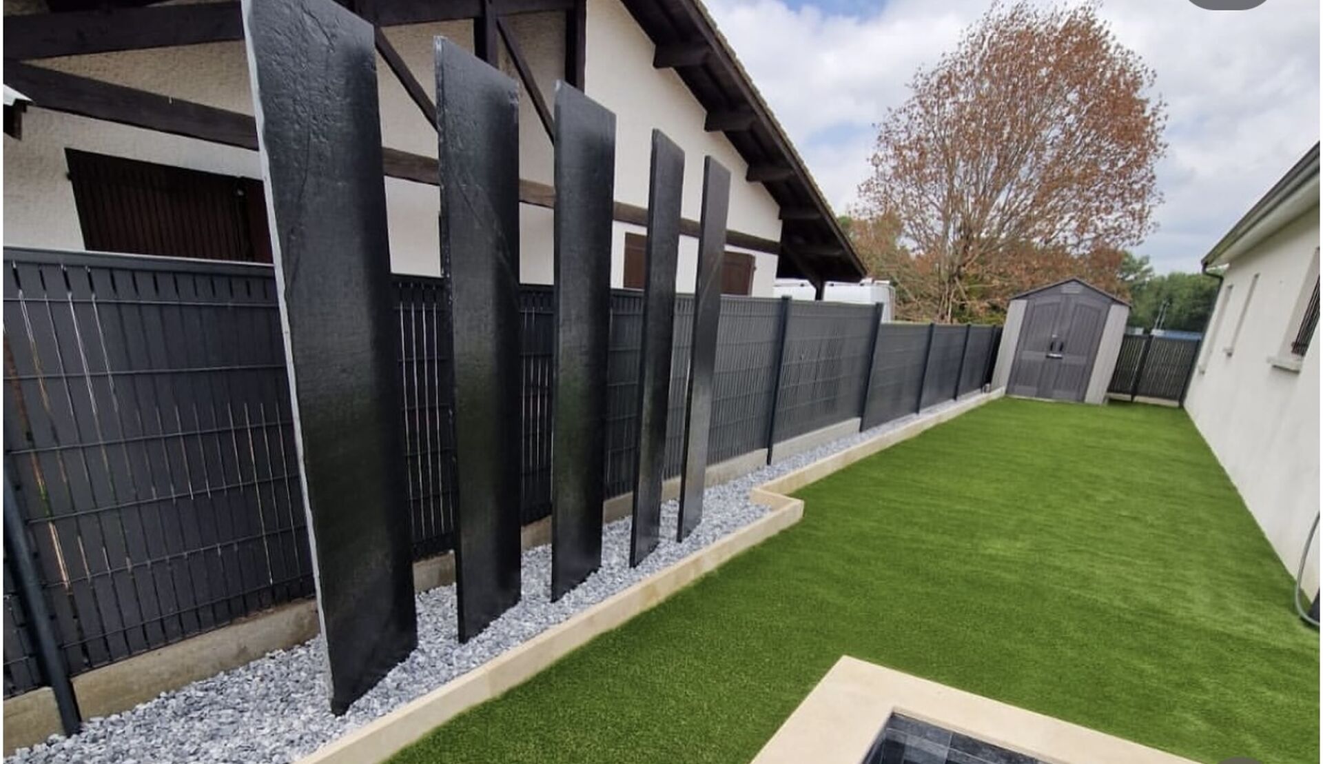Notre équipe conçoit et réalise des espaces uniques intégrant massif, gazon synthétique et dalle ardoise, alliant esthétique, praticité et durabilité.